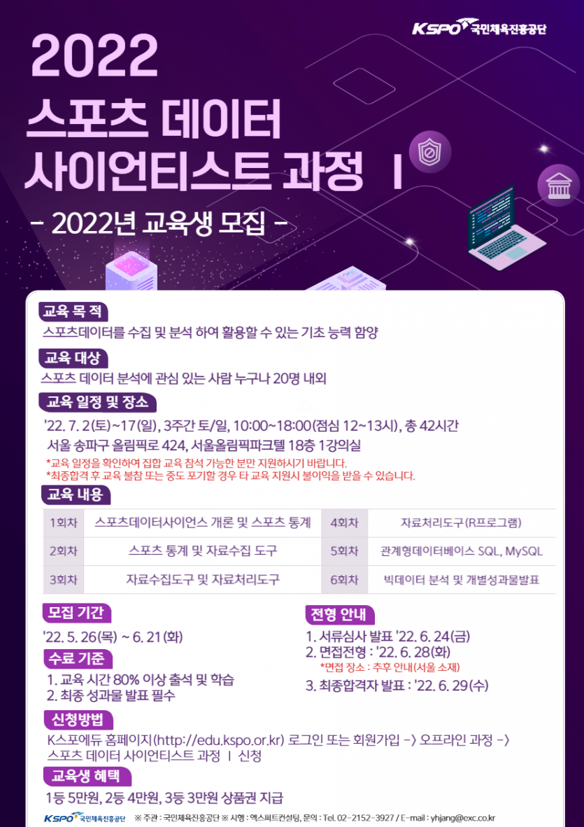 스포츠 디지털영상 제작과정과 스포츠데이터 분석 프로그램이니 첨부된 포스터를 참고 부탁드립니다~!